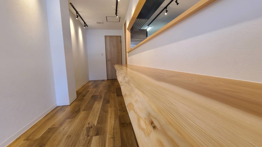 内装は開口の広いカウンター厨房と清潔感のある白、自然木調でシンプルながら優しく温もりのある空間を演出。営業時の賑やかで笑顔のあるお店が想像できますね😊