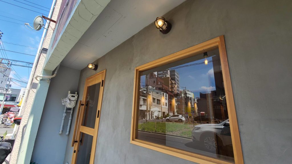 外観はモルタルクリアにてフィニッシュ。アクセントも兼ねた照明を設置させていただきました。